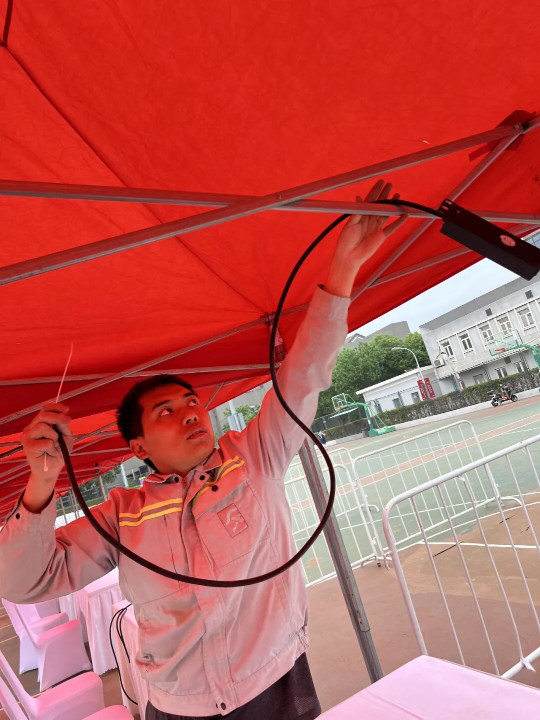 在邱德拔体育馆北广场安装临时电源